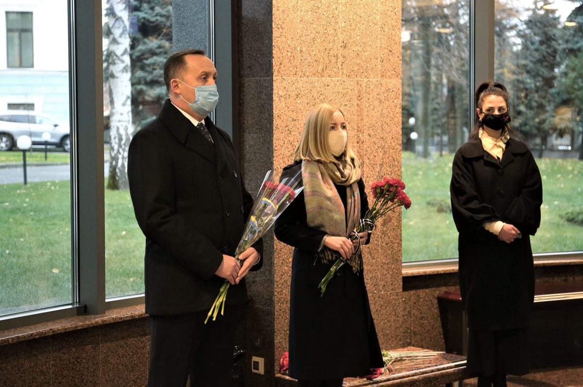 Також в рамках робочого візиту до Міністерства оборони представники делегації Центру взяли участь у щоденному церемоніалі вшанування загиблих українських захисників. Анатолій Петренко та Вінета Кляйне вшанували загиблих українських Героїв та поклали квіти до Стели Пам’яті.