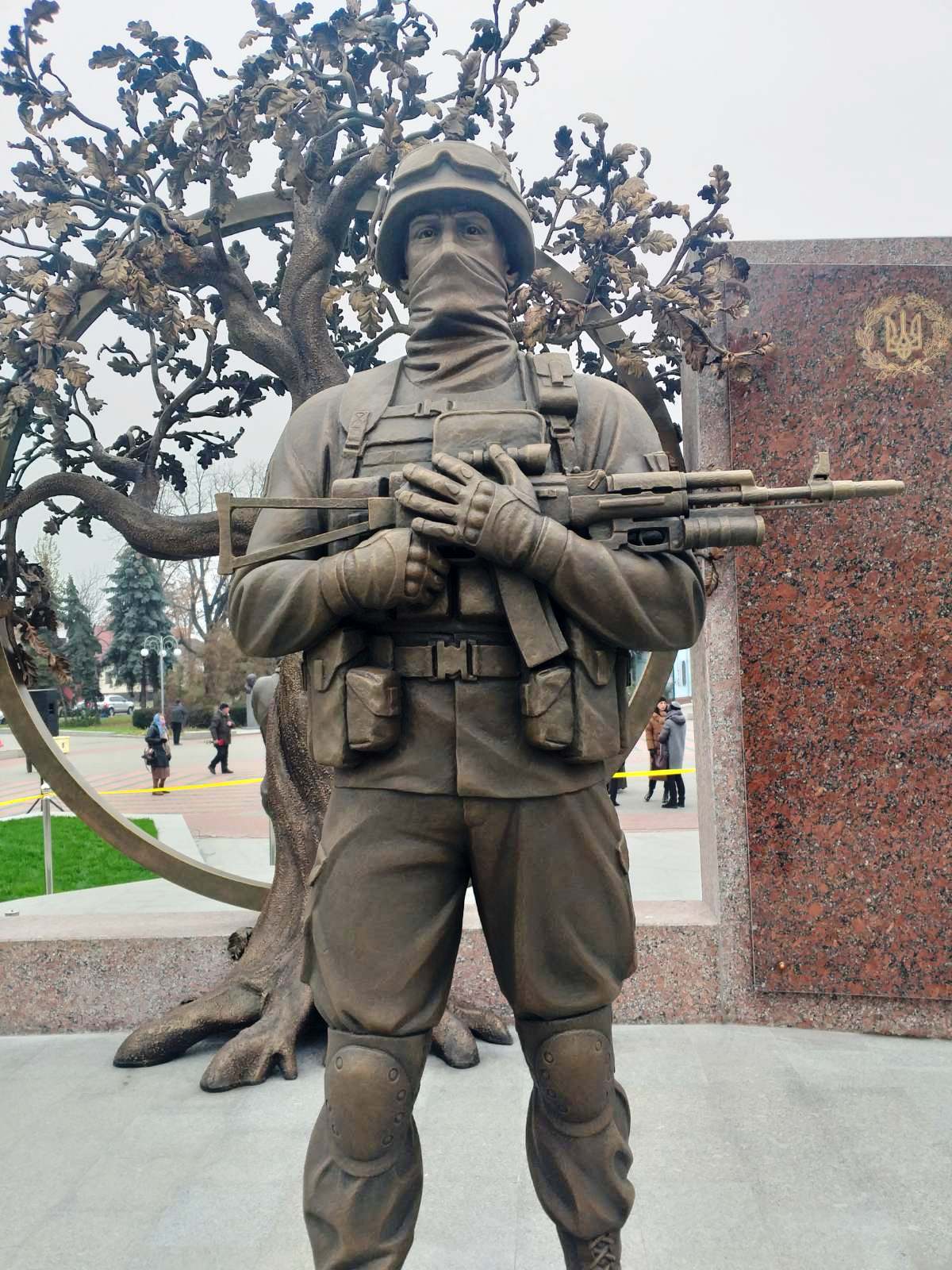 — Багато часу працював над тим, щоб вивчити екіпіровку українських військових того часу, їхнє озброєння, одяг, взуття. Тоді навіть товариші з фронту надсилали свої фото. Обрав такий собі середній варіант військового. Кожен мій крок пропущений через руки, розум і душу. Цей меморіал є уособленням героїв, полеглих заради кращого майбуття, — зазначив В’ячеслав Федорченко.
