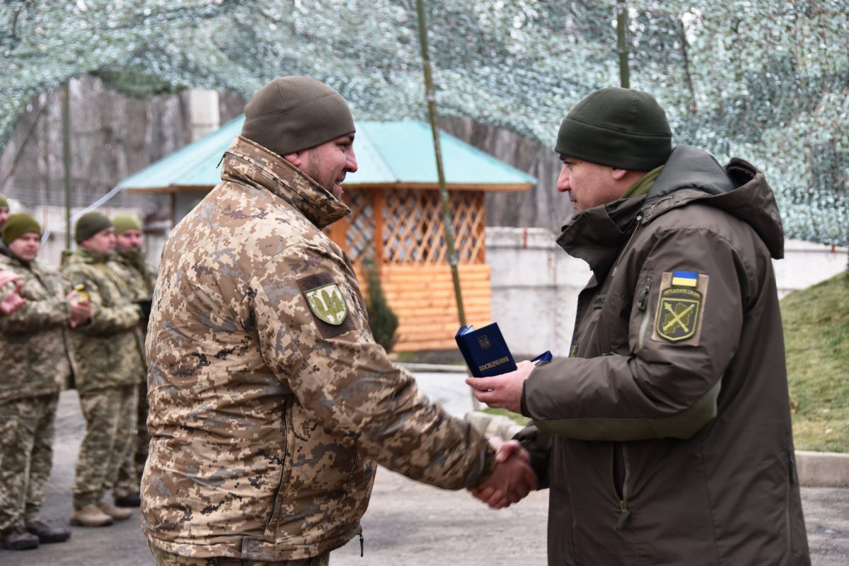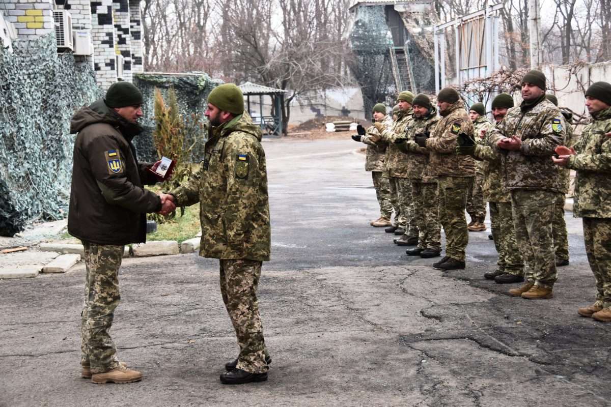 ТВО командувача Об’єднаних сил генерал-майор Віктор Ганущак привітав воїнів з прийдешнім днем Збройних сил України, подякував їм за сумлінну службу та вручив відомчі нагороди – нагрудний знак «Захиснику України» та медалі «Відзнака Ради національної безпеки і оборони України» І, ІІ та ІІІ ступенів.