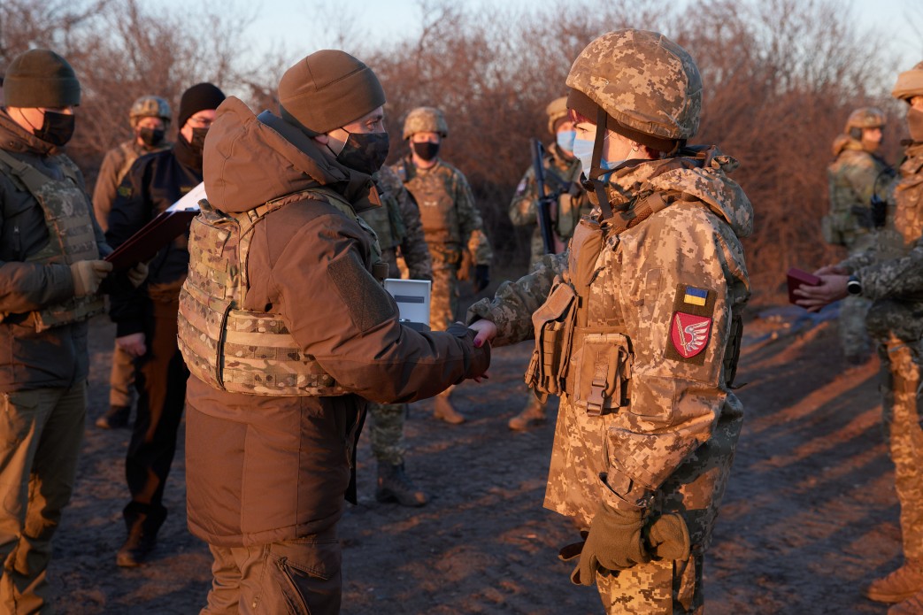 У День Збройних сил України Президент Володимир Зеленський зустрівся з військовослужбовцями на передовій, у зоні проведення Операції об’єднаних сил у Донецькій області. Про це повідомляється на сайті Офісу Президента.