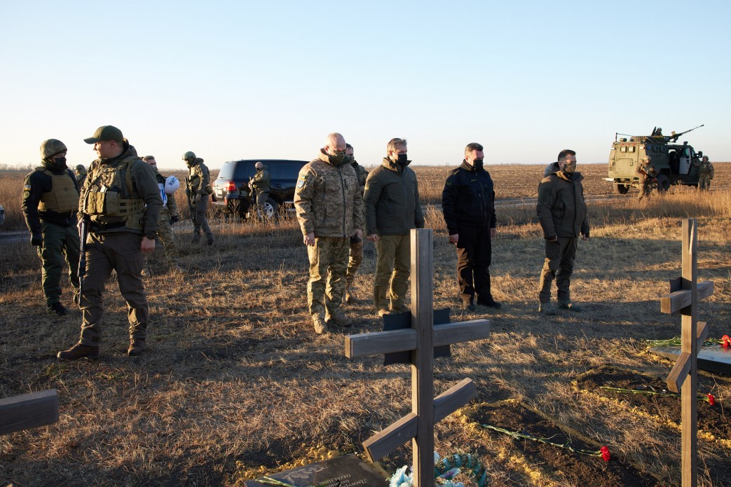 Володимир Зеленський оглянув бойові позиції та ознайомився з умовами несення служби. Глава держави вшанував полеглих героїв на символічній алеї пам’яті, облаштованій на місці загибелі бійців.