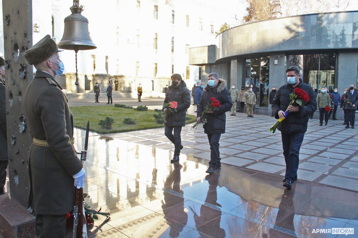 Довідка. Зала пам’яті захисників України створена на вшанування пам’яті військовослужбовців, які загинули за свободу, незалежність і територіальну цілісність України, світовий мир та порядок. Її спеціально розташовано таким чином, щоби й військовослужбовці, працівники Міноборони та Генерального штабу, й пересічні громадяни могли зайти до Зали та віддати шану своїм захисникам.