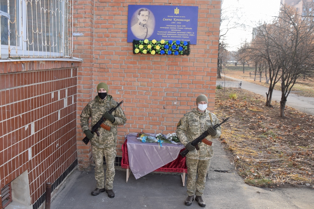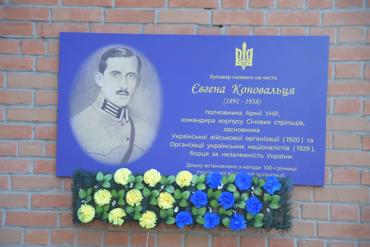 Церемонія відкриття інформаційної пам’ятної дошки Євгенові Коновальцю відбулася з нагоди сторіччя створення Української військової організації (УВО). Її розмістили на фасаді полтавської ЗОШ № 34, яка розташована на бульварі, що має ім’я полковника.