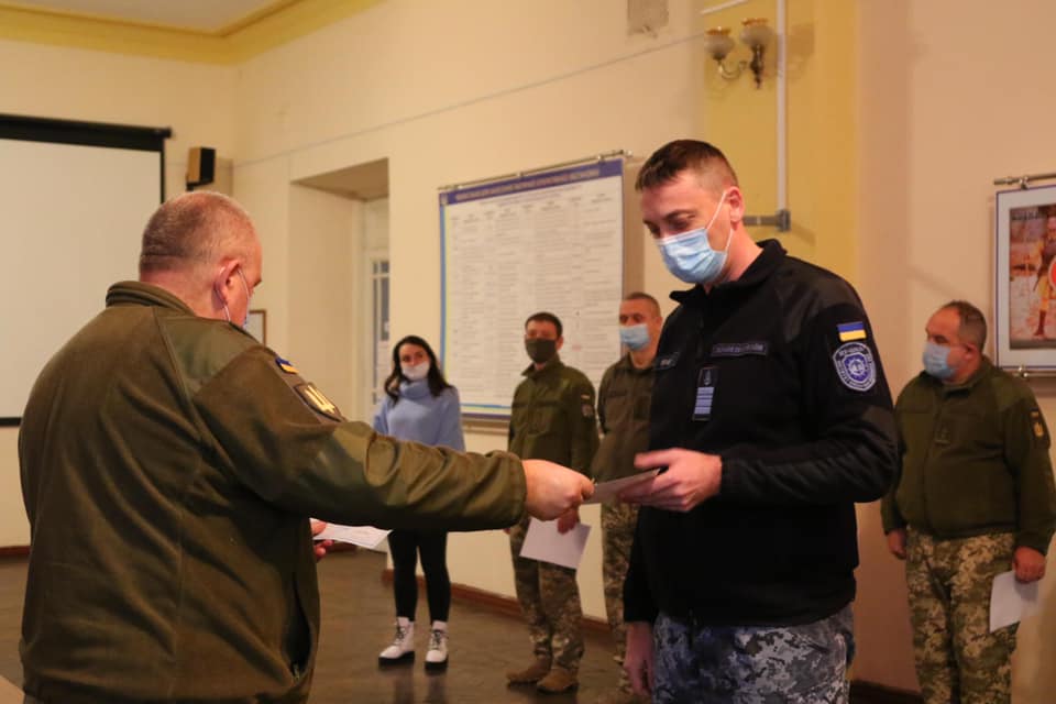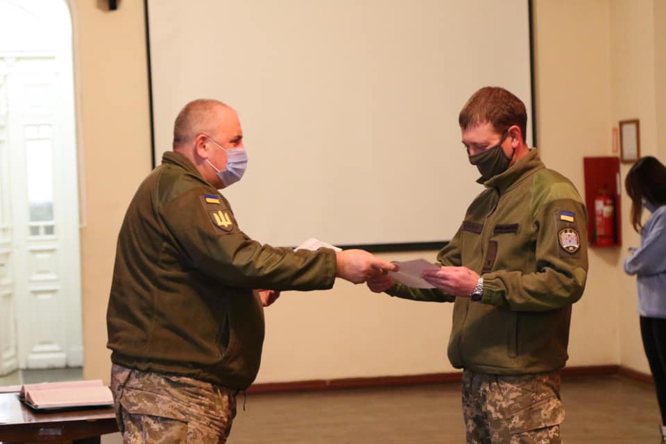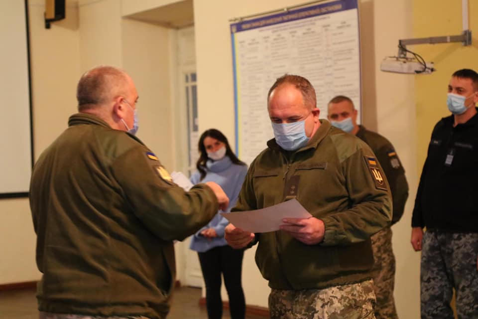 Завершальним етапом проведення курсів стало – складання іспитів та отримання свідоцтв про завершення навчання. Якнайкраще впорались із складними завданнями – полковник Володимир Клименко, капітан 2 рангу Борис Попков, працівник ЗСУ Ірина Іваницька.