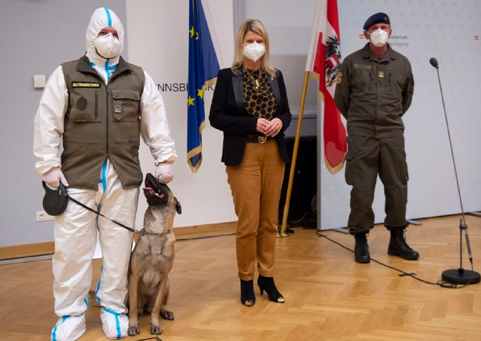 – Поруч із численними завданнями, які виконують збройні сили, наші військові також беруть участь в актуальних дослідження, як це демонструє нині армійський кінологічний центр, займаючись підготовкою собак для виявлення COVID-19. Тут використовують ноу-хау кінологів та навички наших чотириногих помічників, щоб у майбутньому можна було швидко та ефективно виявляти коронавірус, – прокоментувала експеримент міністрка оборони Клаудіа Таннер.