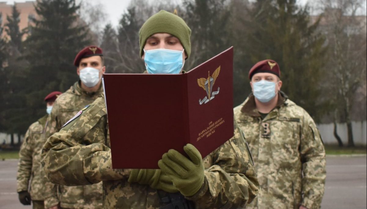 Після церемонії складання Військової присяги на вірність українському народові молоді воїни промовили слова «Клятви десантника» Збройних Сил України та одягнули марунові берети.
