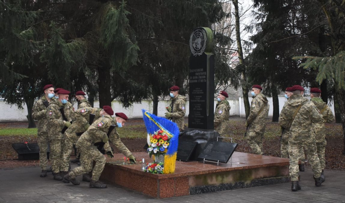 Десантники вшанували пам’ять загиблих захисників України хвилиною мовчання, після чого поклали квіти до пам’ятного знаку, встановленого на території Навчального центру.