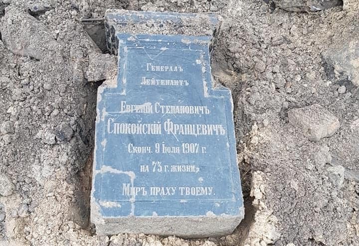 У центрі Києва екскаватор натрапив на надгробок генерала імператорської армії Євгена Спокойського-Францевича.