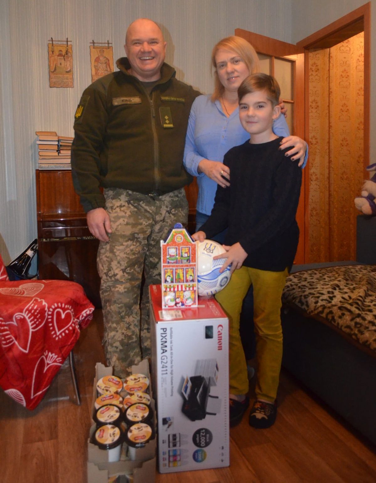 Товариші по службі привітали Колеснікова молодшого з прийдешнім Новим роком, побажали бути таким же мужнім, доброзичливим і чуйним, як його тато. Хлопець був дуже радий подарунку військових — принтеру. Данило захоплюється фотомистецтвом, тому принтер потрібен йому для якісного друку фотографій.