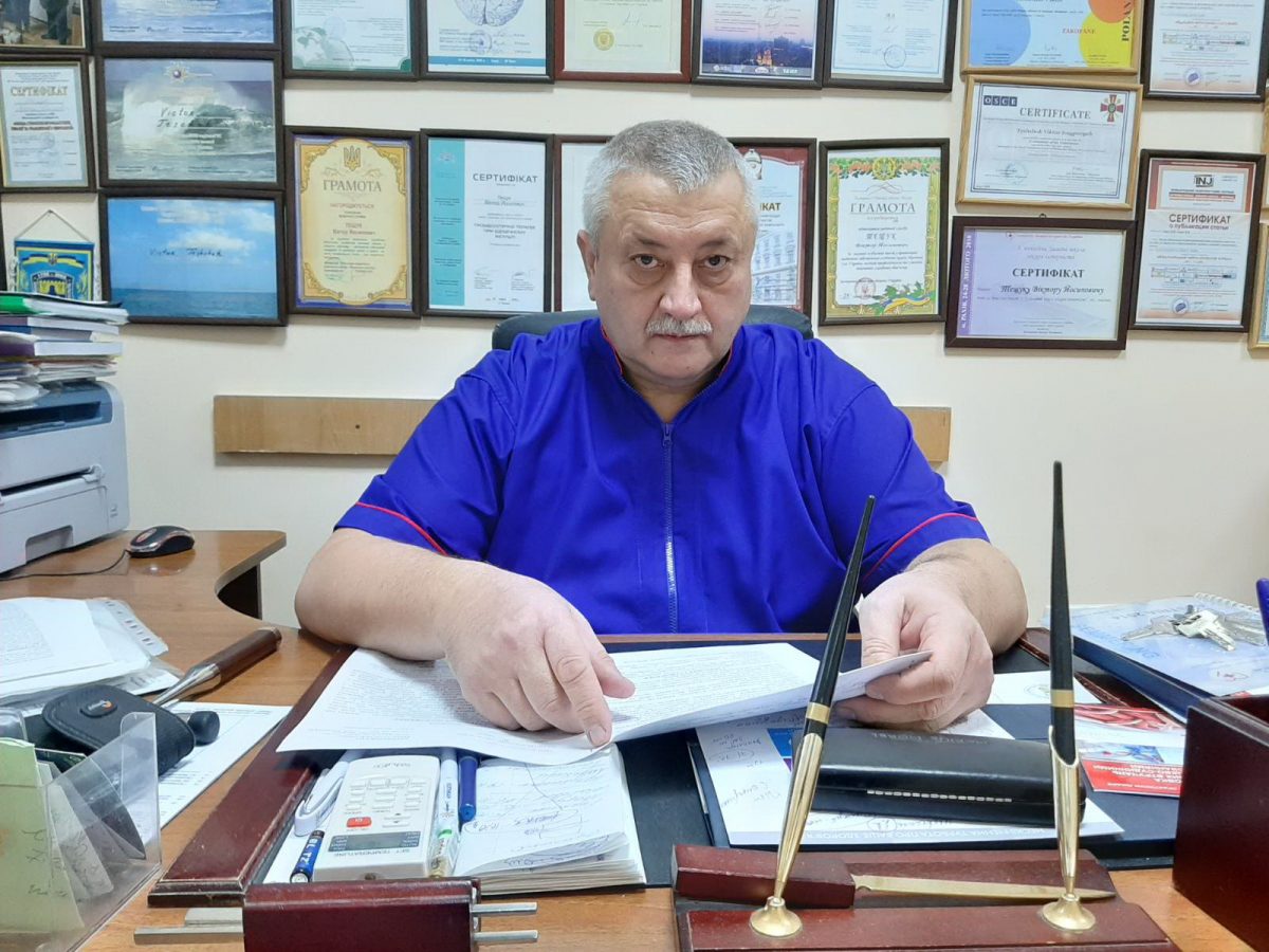 У кабінеті завідувача ангіоневрологічного відділення клініки нейрохірургії і неврології Військово-медичного клінічного центру Південного регіону відразу впадають у вічі велика кількість подяк, почесних грамот та сертифікатів, які займають практично всю стіну. Є серед них і п’ять патентів на винахід.
