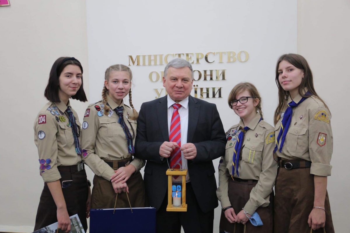 Пластуни також виконали пісню Вифлеємського Вогню Миру та подякували Міністру оборони України за підтримку оборонним відомством передачі Вифлеємського Вогню Миру, в тому числі в район проведення операції Об’єднаних сил.