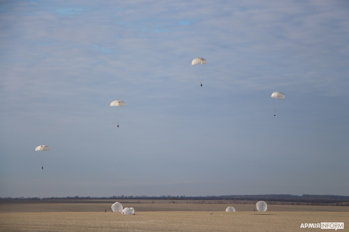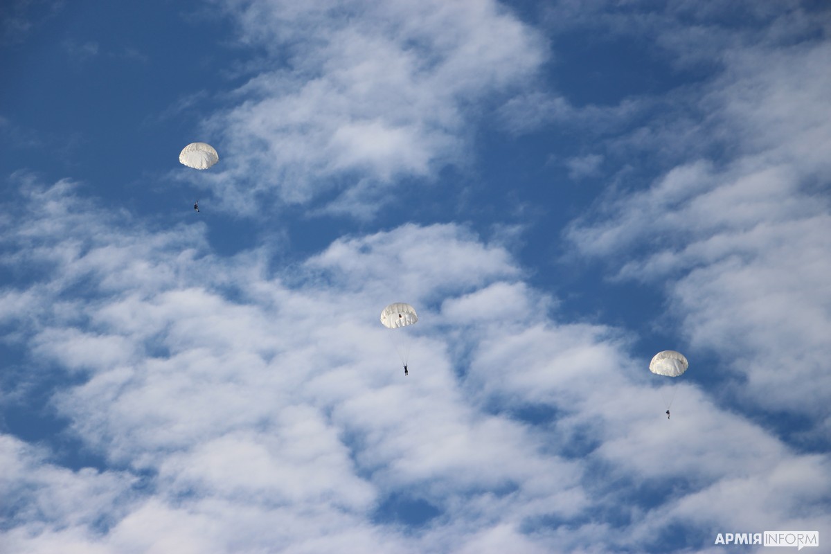 Більш досвідчені десантники стрибали з висоти 600 метрів зі зброєю та рюкзаком десантним, екіпірованим засобами індивідуального захисту та запасом води. Стрибки проводилися під контролем та керівництвом фахівців частини, які мають відповідний досвід.