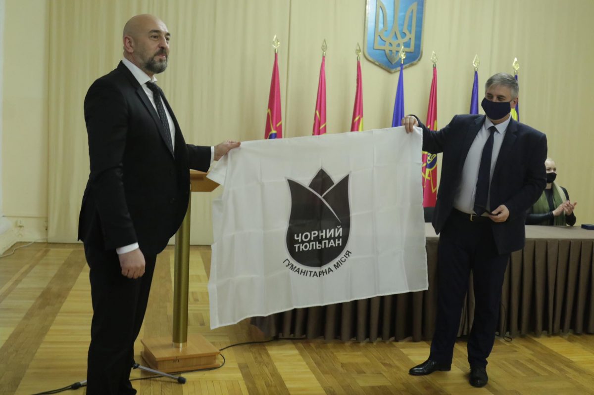 Волонтери-пошуковці передали заступнику глави оборонного відомства прапор та шеврон гуманітарної місії «Чорний тюльпан», як символ подальшої співпраці.