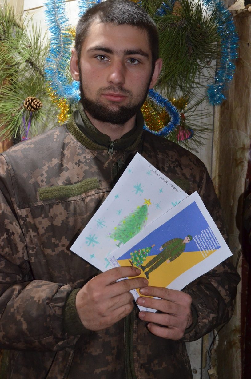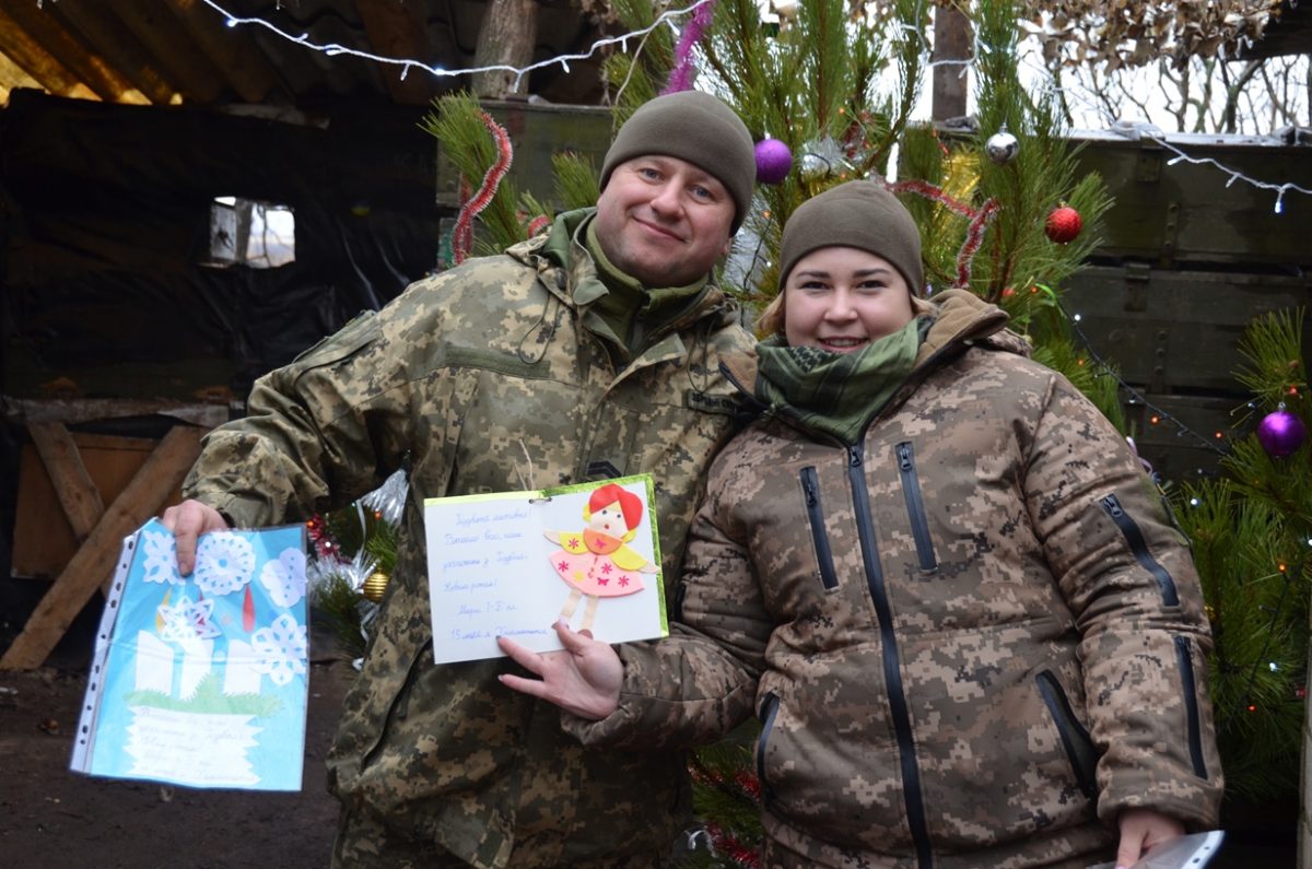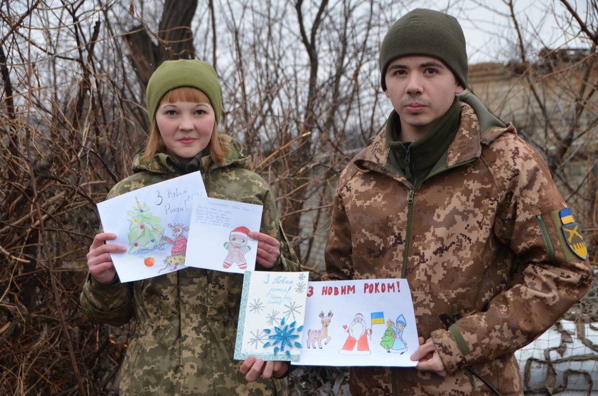 Дитячі малюнки, вітальні листівки з побажаннями тепла, миру, швидкого повернення додому зігріватимуть серця наших воїнів, які перебувають у районі проведення операції Об’єднаних сил. Військові із задоволенням розглядали кожен малюнок і читали побажання від маленьких українців. Вони подякували дітям за подарунки, які є великою моральною підтримкою. Ба більше, для воїнів це своєрідні обереги: їх носять у кишенях, ними прикрашають стіни бліндажів і бойові машини.