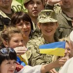 До речі, завдяки знайомству та співпраці з капеланом Осипом Славичем пізніше Олена двічі побувала у складі делегації українських військових паломників у французькому місті Люрд. І кожної з цих паломницьких місій українці також відвідували Рим, де у Ватикані були удостоєні прийому Понтифіка. Двічі Папа Римський тиснув руку українській красуні в піксельному однострої, дякуючи українському народові за стійкість, мужність і вірність християнській церкві.