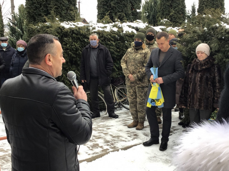 Право відкрити меморіальну дошку було надано голові Ізяславської районної громадської організації ветеранів АТО Володимиру Павлюку. Пам’ять про бійця, який віддав своє життя за незалежність і територіальну цілісність України, вшанували хвилиною мовчання.