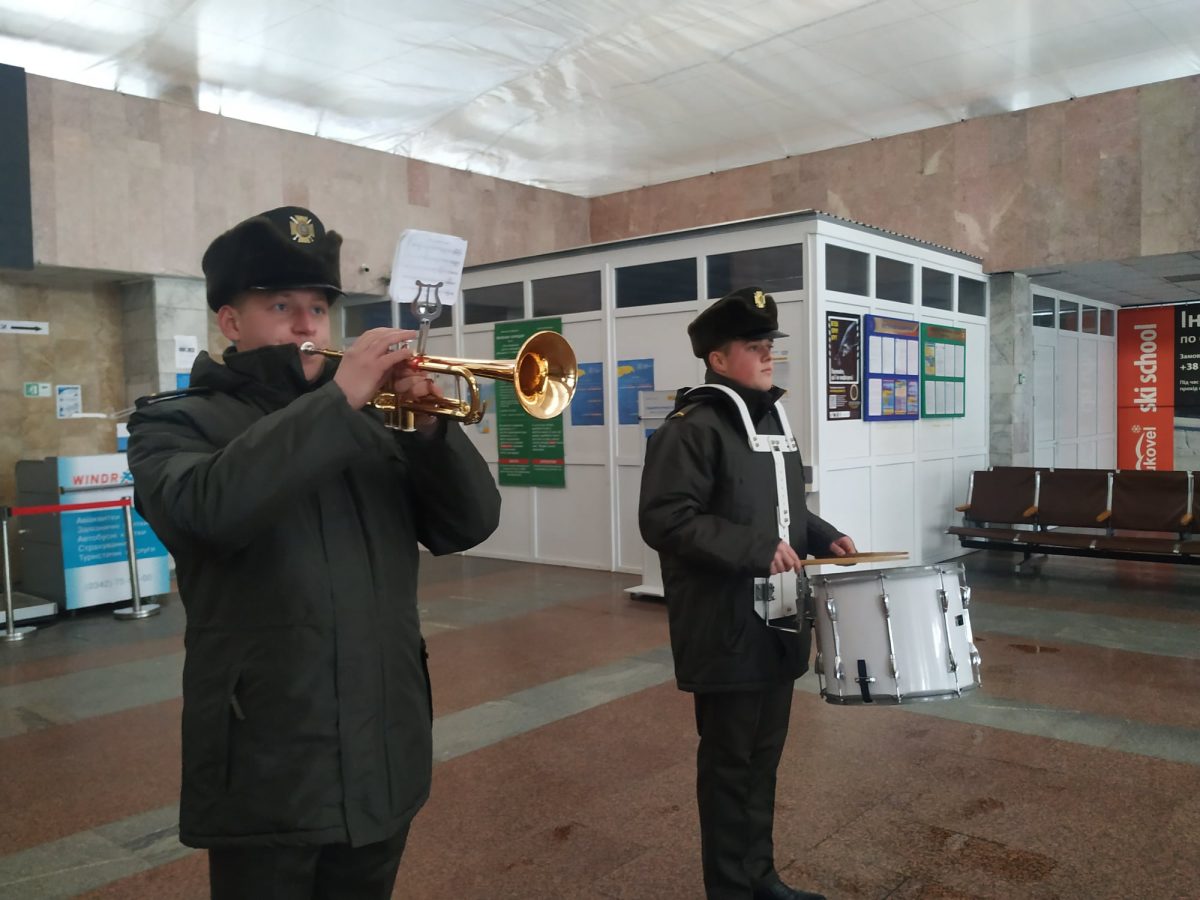 В аеропорту Івано-Франківська представники військового оркестру 44-ї окремої артилерійської бригади з Тернополя виконали музичну композицію «Шана».