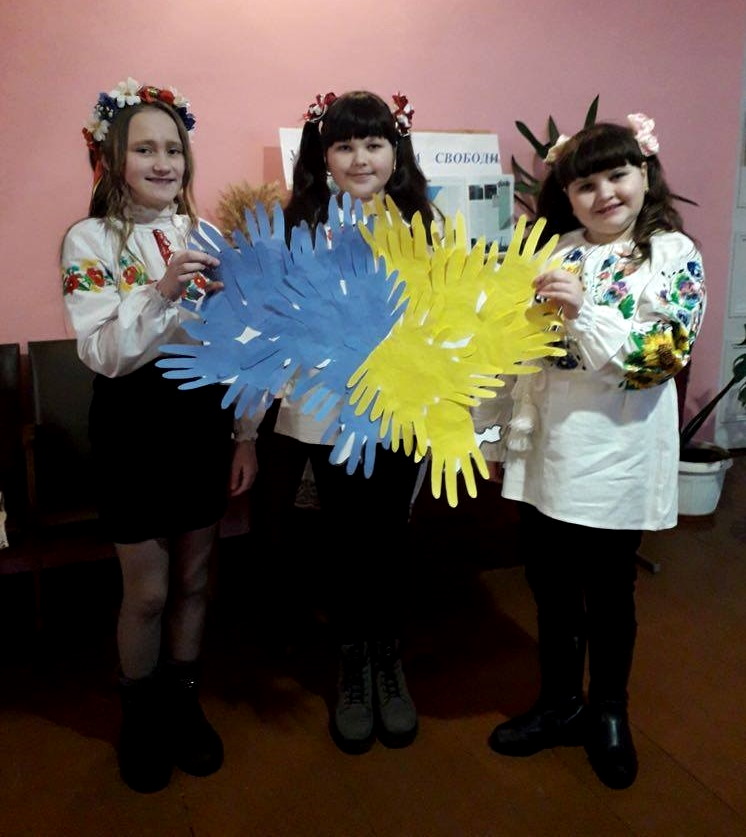 Діти на імпровізованих паперових «долоньках» синього й жовтого кольорів власноруч писали «Що для мене Україна» та формували з виробів велику карту нашої держави. Також у цій частині проведено конкурс дитячих малюнків «Україна очима дітей».