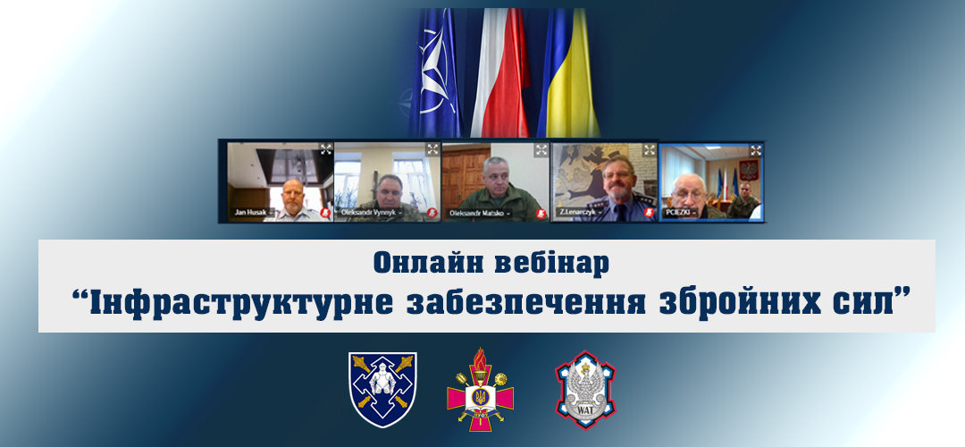 Учасники вебінара розглянули проблемні питання підготовки військових фахівців інфраструктурного забезпечення. Викладачі Військової технічної академії Республіки Польща представили для обговорення можливі варіанти підготовки фахівців інфраструктурного забезпечення оперативного та тактичного рівнів.