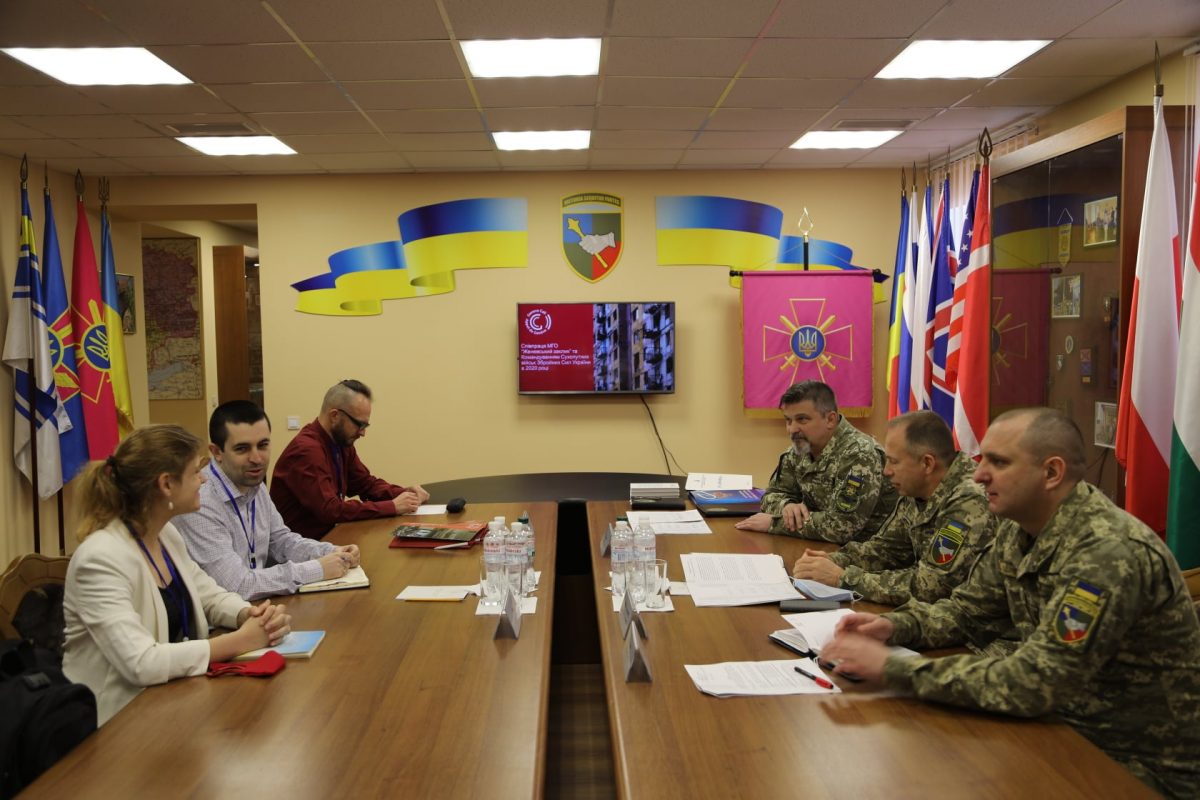 У Командуванні Сухопутних військ відбулася робоча зустріч командувача Сухопутних військ Збройних Сил України генерал-полковника Олександра Сирського з головою представництва в України Амелі Гійо, інструктором міжнародної організації В’ячеславом Раєвським та юристом представництва Тарасом Лешковичем.