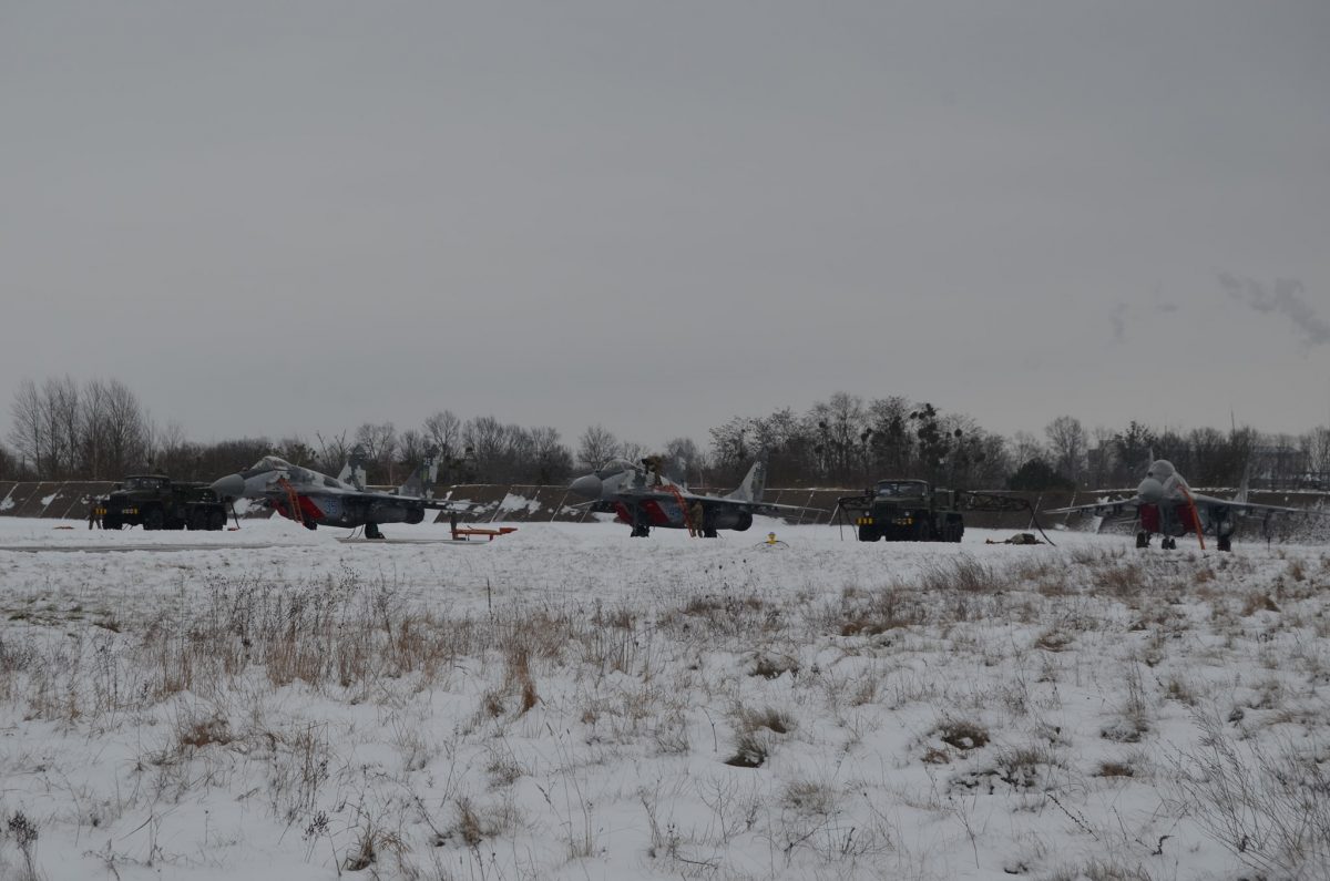 На винищувачах МіГ-29 пілоти виконали політ парою на складний пілотаж, відпрацювали ведення групових та одиночних повітряних боїв вдень і вночі в складних метеоумовах, а також виконали політ у хмарах на малих висотах.