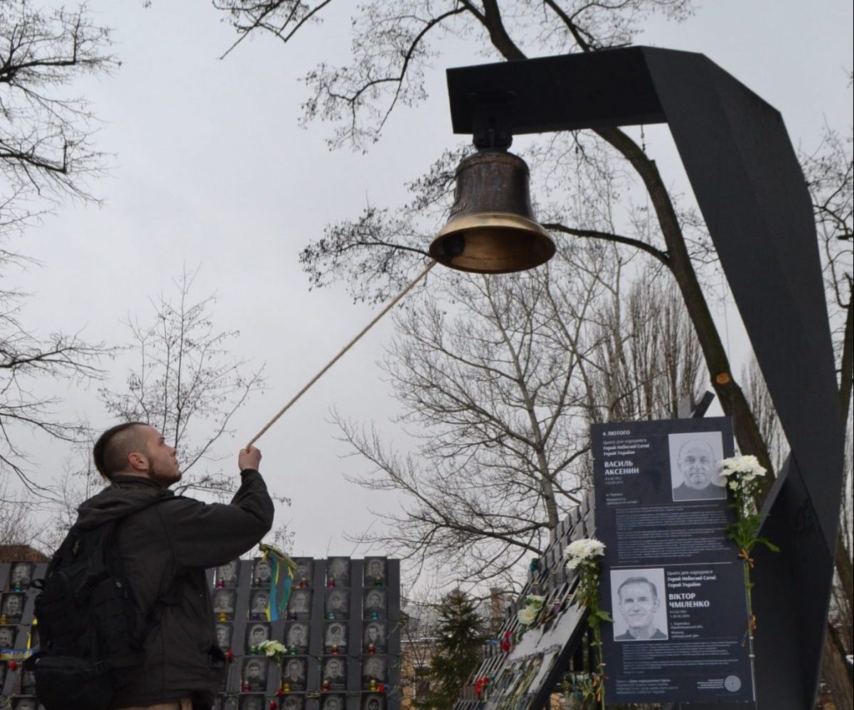 Щоразу в день народження Героїв Небесної Сотні перед Дзвоном гідності з’являються портрети Героїв та живі квіти. Цього дня лунає пам’ятний дзвін. Сьогодні він пролунав двічі: у пам’ять Василя Аксенина та Віктора Чміленка.