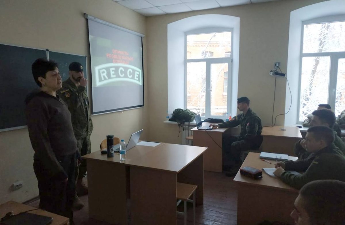 На занятті обговорювалися також питання тактики ведення бойових дій, застосування спеціальної підготовки для ефективного володіння засобами спостереження, зброєю, фізичними та психологічними навичками. Все це було дуже цікаво і корисно для курсантів. Канадські колеги відповіли на багато запитань слухачів щодо особливостей застосування підрозділів ЗС Канади під час виконання спеціальних завдань. Надалі сплановано проведення за участю військовослужбовців ЗС Канади курсу TLP, який має на меті наблизити майбутніх офіцерів-розвідників до роботи за стандартами НАТО.