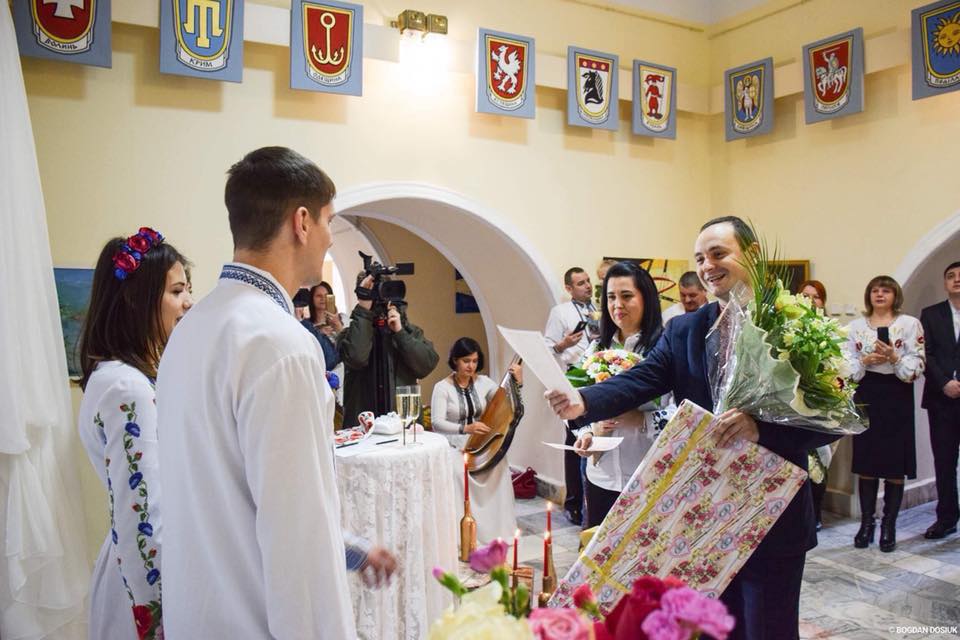 — П’ятисотий експрес-шлюб у нас якраз брав хлопець-учасник АТО. Дуже гарні молодята, брали шлюб у національному вбранні. Їх тоді прийшов особисто привітати мер Івано-Франківська. Була дуже гарна й ніжна церемонія, — говорить пані Юлія.