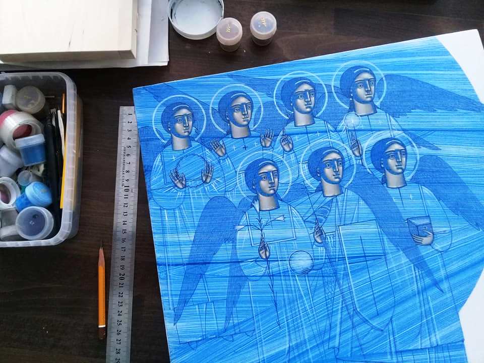 – Є подібні іконописні пленери за кордоном, де збираються відомі майстри пензля з усієї Європи, – розповів адміністратор парафії Покрови Пресвятої Богородиці отець Володимир Боднарчук. – Ми порадились з відомою волонтерською органіацією «Дрогобиччина SOS» та іншими благочинцями і вирішили, що українські митці теж можуть зорганізуватись та створити свої роботи, тим паче, що всі вони створюватимуться заради корисної справи. Саме тому пленер проходить під патронатом Самбірсько-Дрогобицької єпархії Української Греко-Католицької церкви та має гасло «Небесні покровителі».
