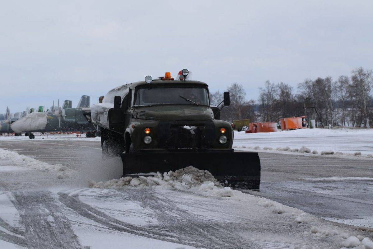 Як говорять військові, аби звільнити від снігу злітну смугу необхідно кілька годин кропіткої роботи. Тому аби своєчасно привести до ладу територію аеродрому до початку льотної зміни, яка розпочинається вранці, особовому складу доводиться підніматися та братися до роботи ледь не опівночі.