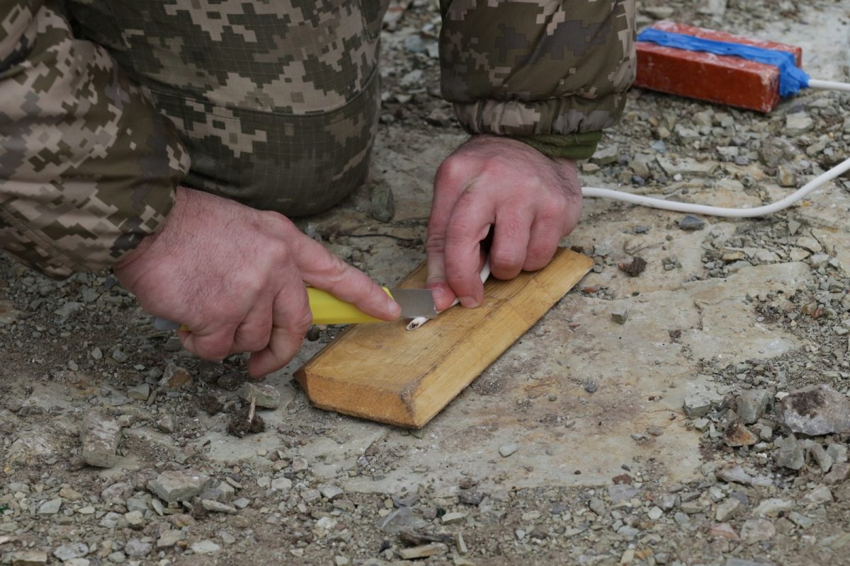 …Разом з наступною групою курсантів рухаємося на вихідні позиції. Звертаю увагу, що в кожного — гострий ніж, спеціальний інструмент, зовні схожий на пасатижі, невеличкий шматок дошки, ізоляційна стрічка.