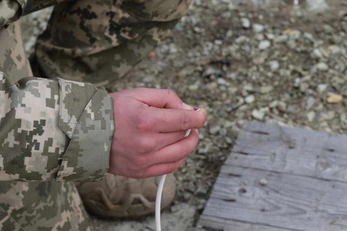 Йшла перевірка електродетонаторів ЕДП-р. Оскільки є ймовірність його спрацювання під час тесту, сам детонатор опускають у невеличку лунку, зверху накривають лопаткою, потім уже приєднують кінцівки дроту до приладу. На цей раз всі ЕДП-р виявилися справними, група вирушила на рубіж.