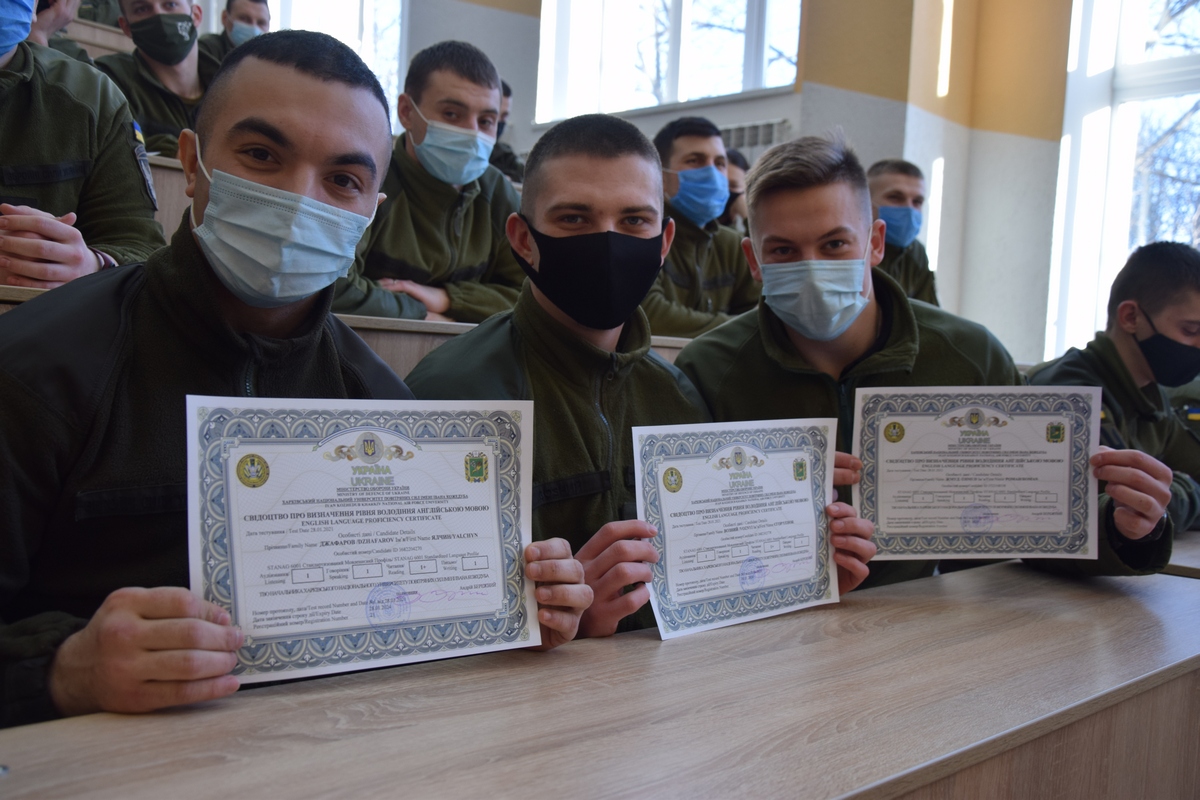 — Заняття проходили у факультативній формі, — розповіла курсантка Владислава Бондарчук. — На відміну від програмних 108 годин, мовний курс був уп’ятеро більшим. Але час на опанування іноземною жоден з нас не вважає згаяним. Це потужне доповнення до основної спеціальності в сенсі мовної сумісності з арміями країн-партнерів НАТО та подальшої перспективи особистого кар’єрного зростання.