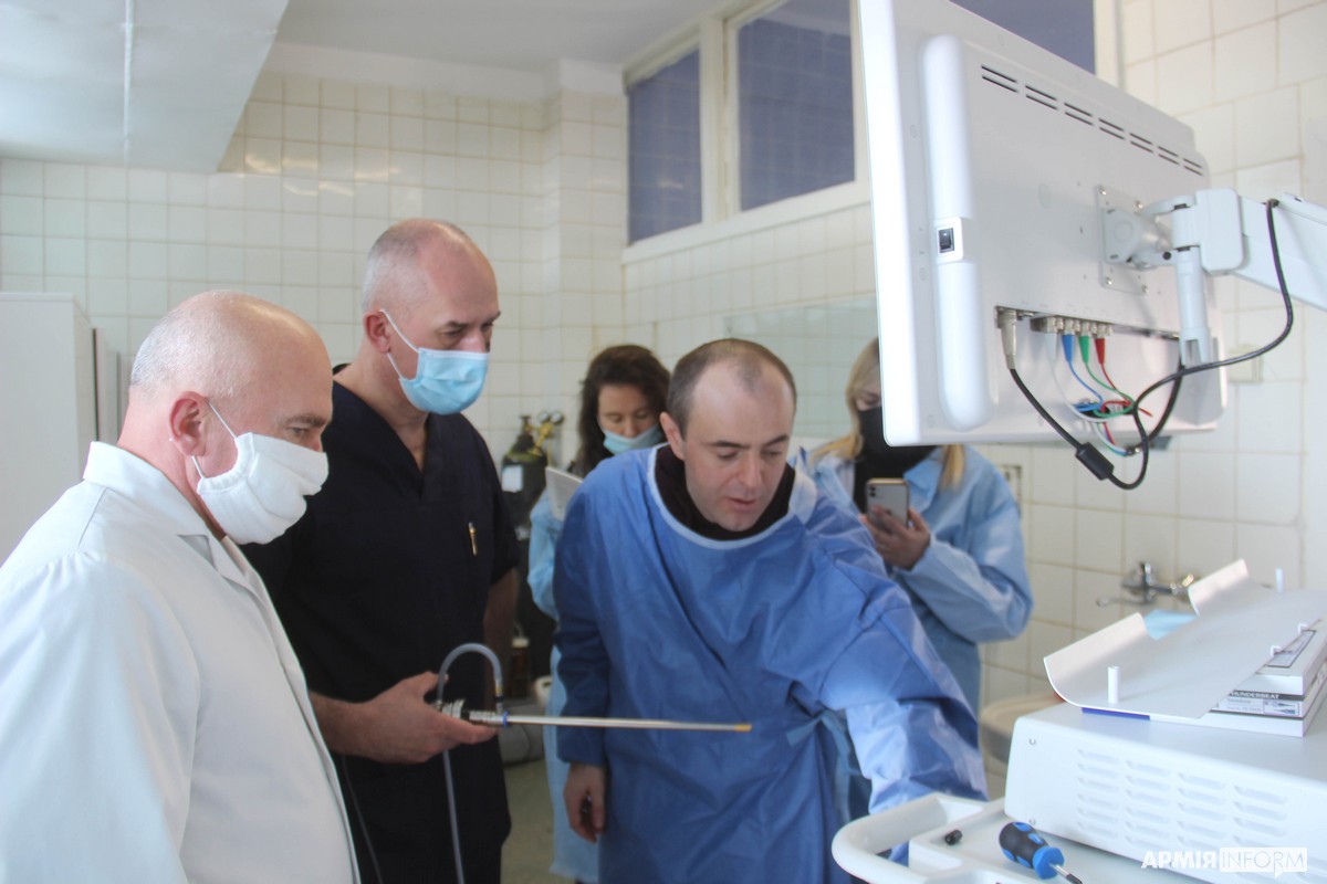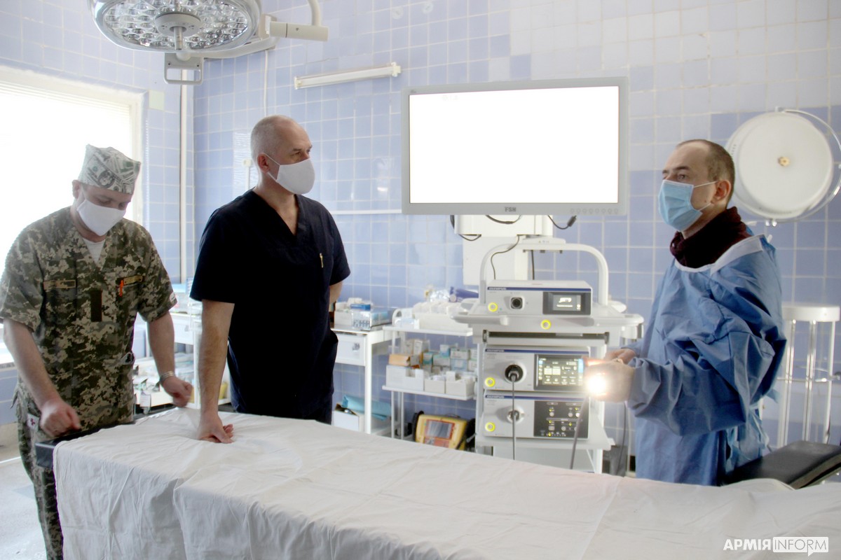 — Цей комплекс призначений для виконання лапароскопічних малоінвазивних хірургічних втручань практично на будь-яких органах і структурах організму. Принцип таких операцій полягає в тому, що для доступу до органів роблять не більше ніж чотири розрізи розміром 5-10 міліметрів. Через них вводять спеціальний хірургічний інструмент. Його можна застосовувати в усіх напрямках хірургії: гінекології, урології, травматології, торокальній хірургії тощо, — розповів начальник клініки невідкладної хірургії ВМКЦ Західного регіону полковник медичної служби Григорій Прохоренко. — Перевага цього лапароскопічного комплексу — якість зображення в роздільній здатності 4К. Це дає змогу хірургу краще ідентифікувати структури організму і бути надзвичайно точним у своїх діях. Також цей комплекс має ультразвуковий та біполярний скальпель. Це дозволяє без швів перетинати судини з найменшою крововтратою. Так мінімізується травма від оперативного втручання, крововтрата. Пацієнт може у найкоротший термін відновитися після операції і знову стати у стрій.