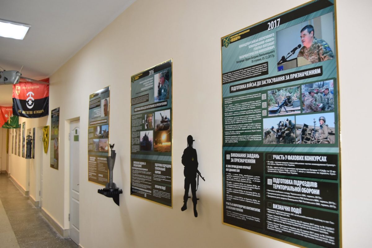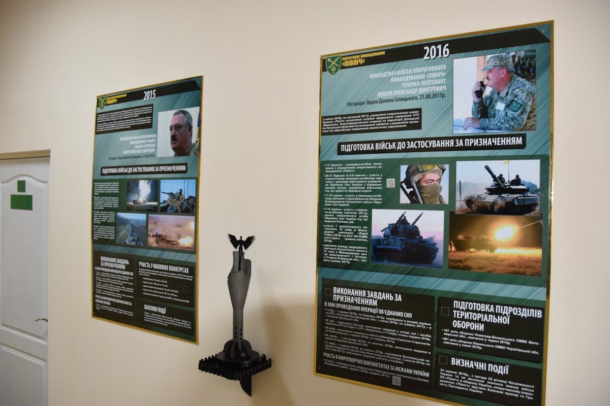 Відкриваючи експозицію, генерал-майор Валерій Залужний, учасник багатьох знакових подій цієї війни, наголосив, що в оперативному командуванні нині служать визначні особистості, якими пишається Україна: три генерали Збройних Сил України, п’ятнадцять кавалерів ордену Богдана Хмельницького ІІІ та ІІ ступенів; три генерали та два офіцери управління, які нагороджені іменною зброєю. Звання Героя України отримали вісім військовослужбовців з військових частин оперативного командування «Північ», і один з них нині продовжує службу в оперативному командуванні.