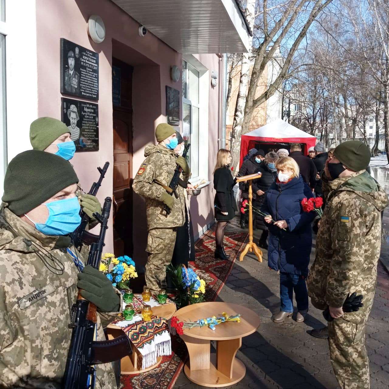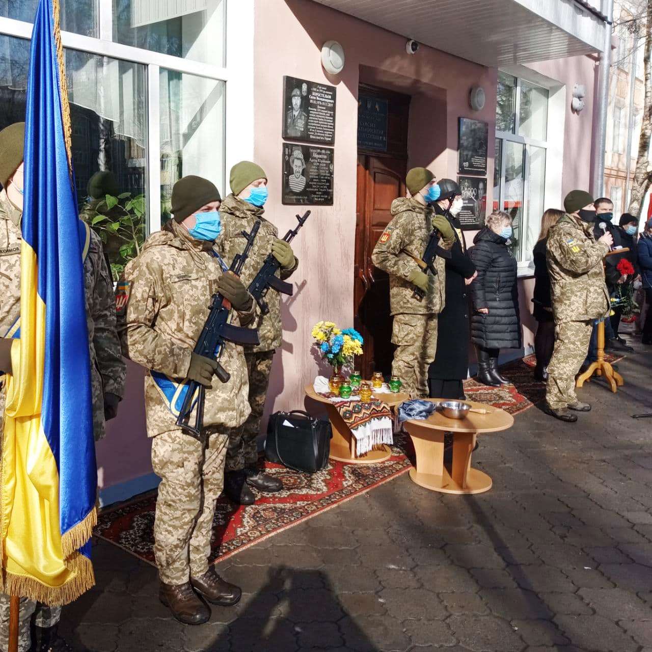 Право відкрити пам’ятну дошку надали його товаришам по службі, а освятив її капелан окремого мотопіхотного батальйону «Суми».