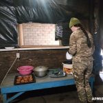 Розповів чоловік і про те, чим годує побратимів на сніданок та вечерю. Залежно від кількості людей, з ранку в меню може бути смажена картопля як гарнір з котлетами чи сосисками або, наприклад, на завтра планують макаронну запіканка з ковбасою на яйцях. Увечері, крім основної страви (сьогодні це картопляне пюре з гуляшем), чоловік нерідко частує військових пирогами або іншою випічкою.