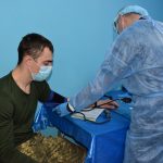 Усім військовослужбовцям перед тим, як отримати вакцину, в окремому кабінеті перевіряють тиск, пульс та температуру тіла. Там же заповнюється необхідна документація. Також на цьому етапі визначають військових, які мають протипоказання до щеплень.