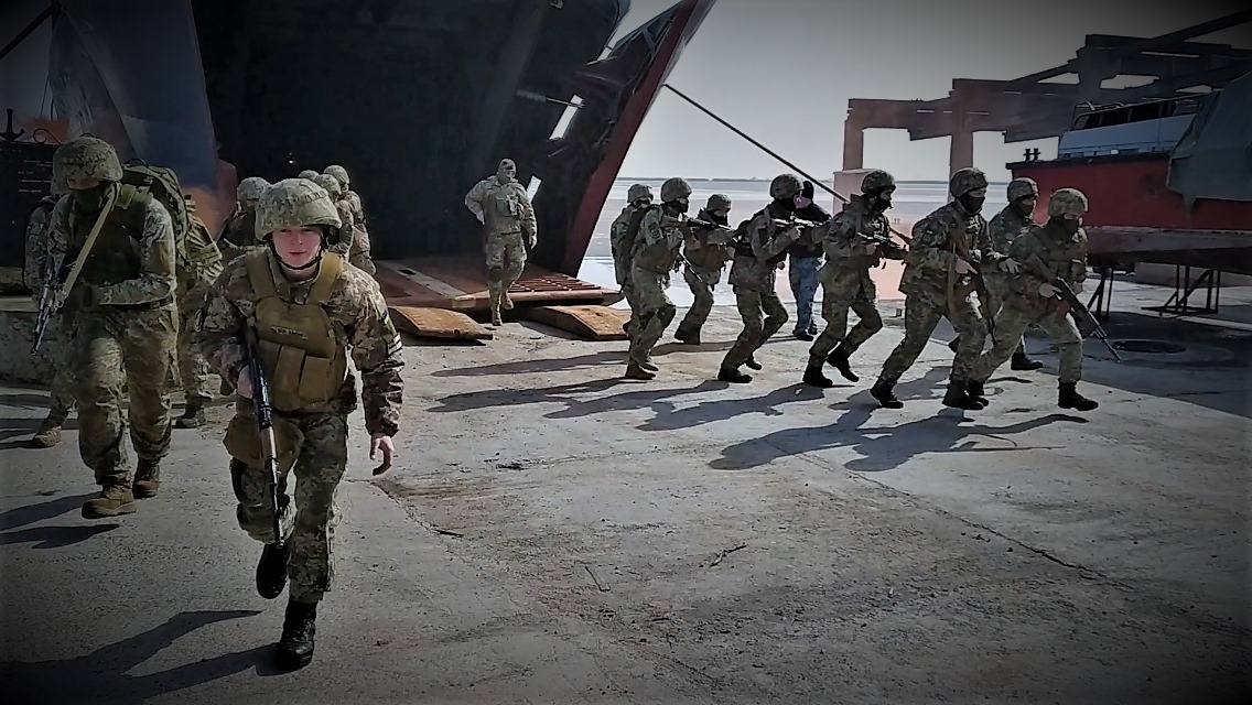 ― Безумовно, перше завдання морського десанту ― захоплення плацдарму на березі. Тож із середнього десантного корабля ВМС ЗС України «Юрій Олефіренко» зійшли на берег декілька груп морських піхотинців зі штатним озброєнням та спорядженням. Вони успішно захопили ворожі позиції умовного противника й зайняли кругову оборону в готовності до виконання наступних завдань.