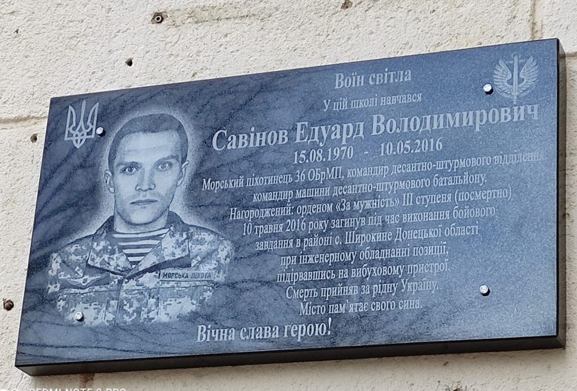 Чорноморці гідно вшанували пам’ять загиблого на Донбасі земляка. На фасаді школи, де навчався Едуард Савінов, відкрили пам’ятну дошку. Вона була встановлена в знак пошани від жителів Чорноморська цьому мужньому чоловікові, який у важкі для країни часи встав на захист своєї Батьківщини.