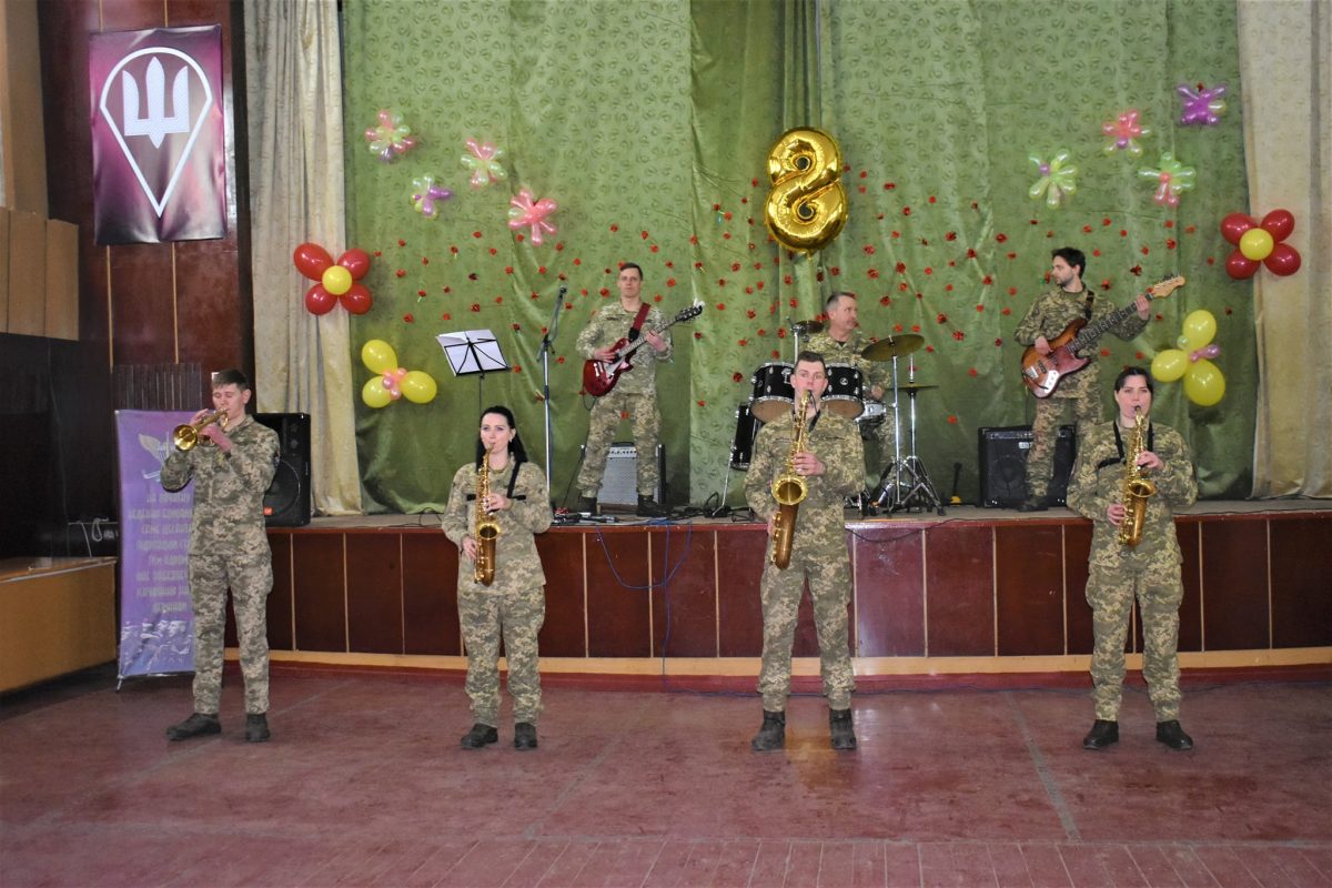 Далі, на представниць прекрасної статі чекала яскрава концертна програма. Запальні пісні, у виконанні військового оркестру, наповнили залу надзвичайною атмосферою, даруючи чудовий настрій та пробуджуючи у кожній душі таку довгоочікувану і бажану весну!