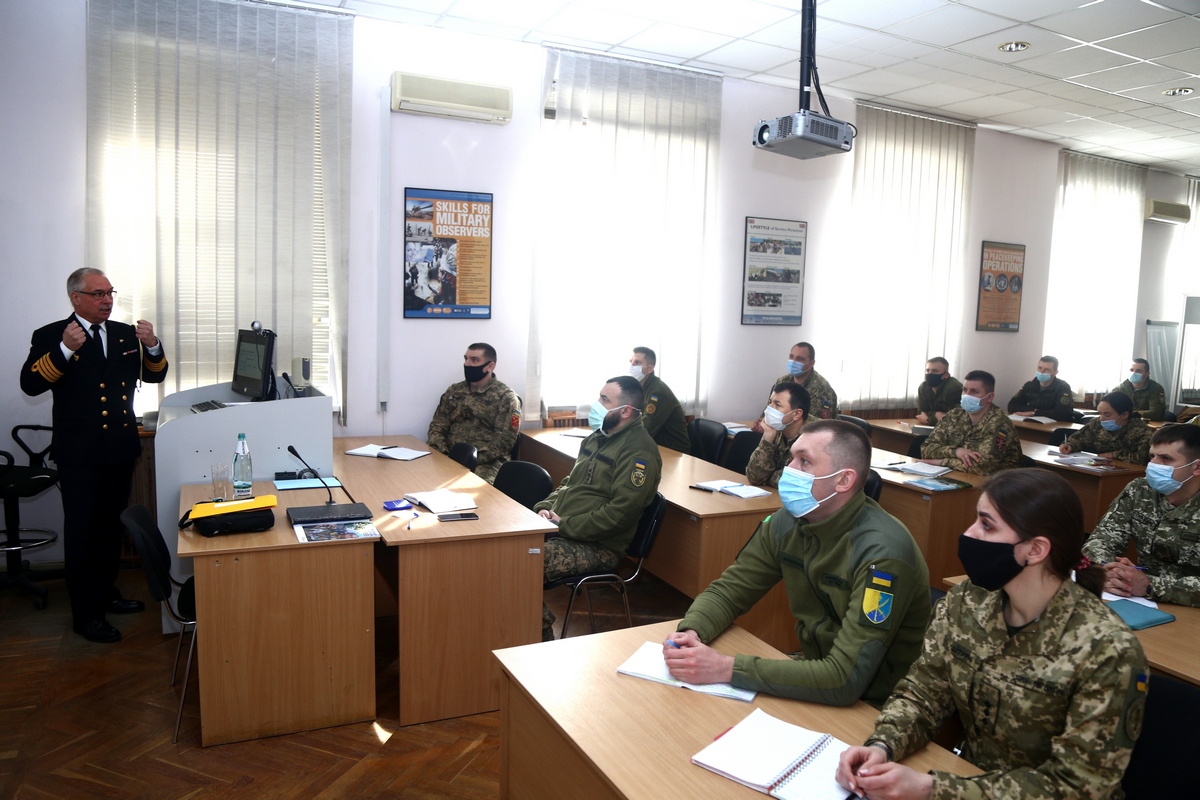 Днями одне з занять провів аташе з питань оборони при посольстві Королівства Данія в Україні. Капітан 1-го рангу Фелікс Еббестад ознайомив слухачів із особливостями проходження служби у штабах НАТО та вимогами, які висуваються до офіцерів багатонаціональних штабів. Досвід спілкування із досвідченим офіцером Альянсу позитивно сприйнятий слухачами курсу. Наприкінці заняття, високоповажний гість відповів на питання щодо подальшого проходження служби на штабних та командних посадах у багатонаціональних штабах.
