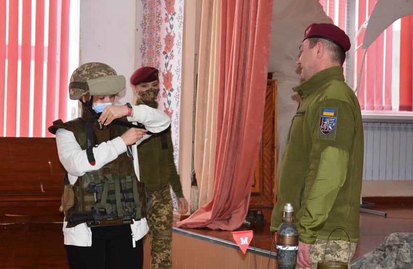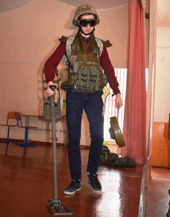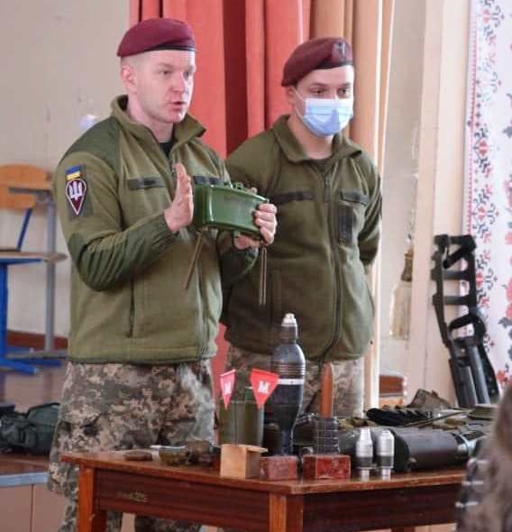 У рамках військово-патріотичного заходу для учнівської молоді захисники провели заняття з мінної безпеки, адже й досі на території Донбасу можуть перебувати невідомі вибухові предмети.
