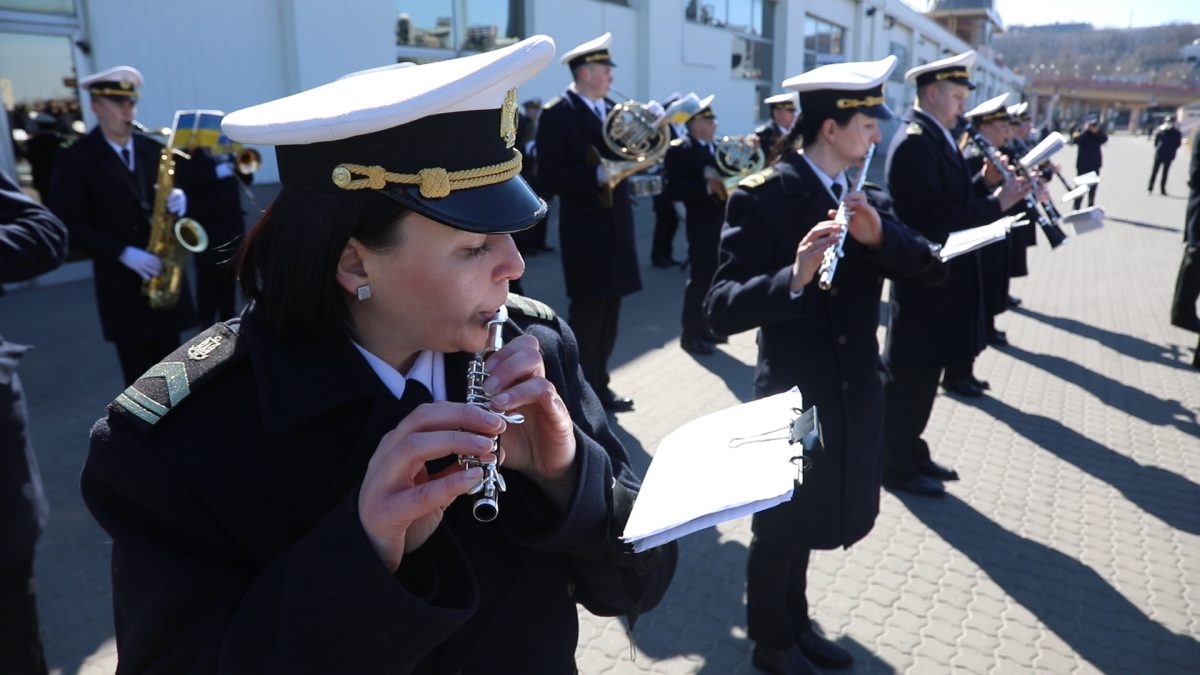 Безпосередньо на причалі Одеського морського вокзалу військові музиканти влаштували концертний виступ, виконавши найкращі композиції зі свого репертуару.