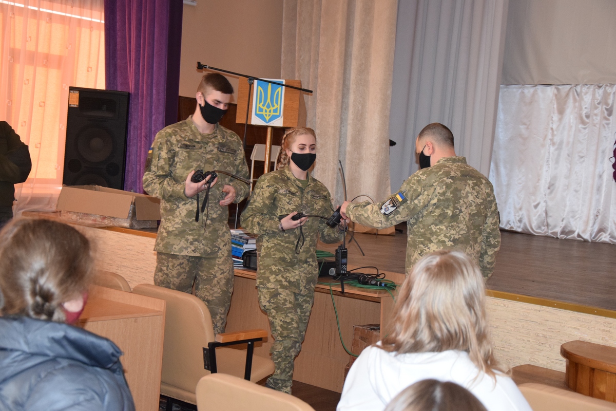 Особливу зацікавленість у присутніх викликали сучасні зразки засобів зв’язку. Юнаки та дівчата зі щирим захопленням оцінили і зовнішній вигляд, і тактико-технічні характеристики сучасного обладнання зв’язку, а також мали можливість і самі провести сеанс виходу в етер.