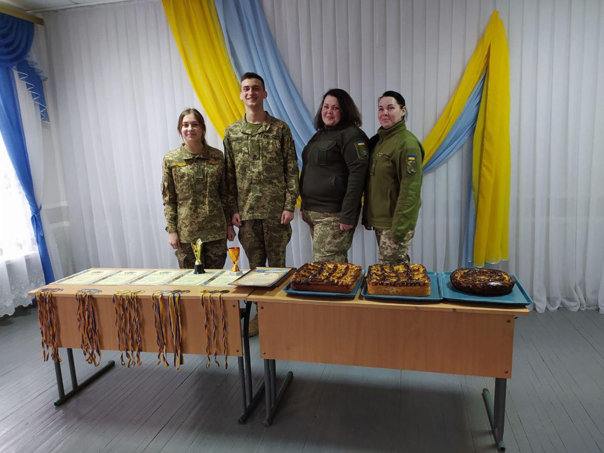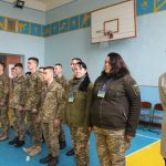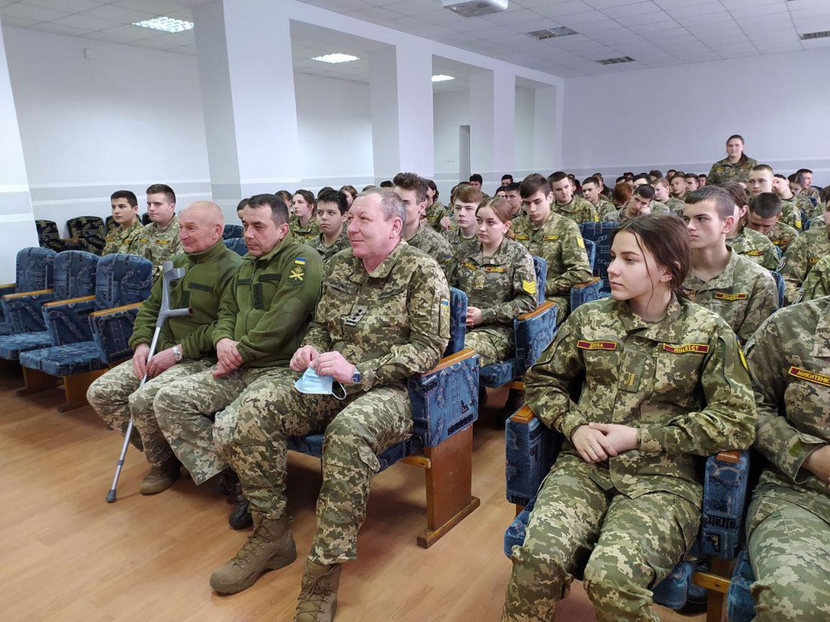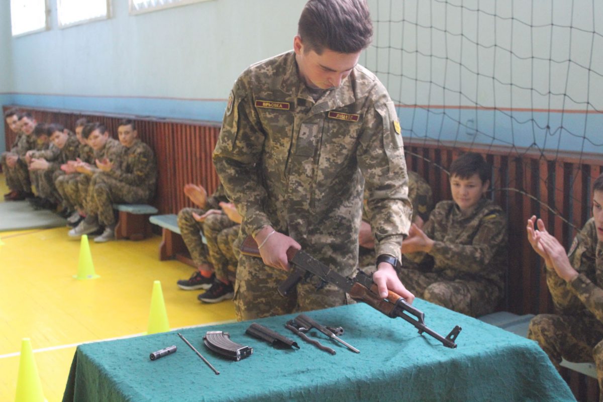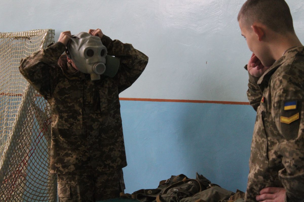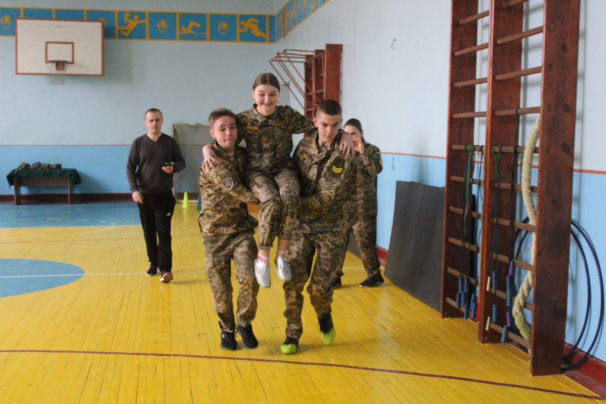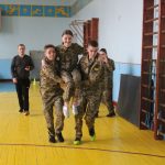 Також одночасно зі змаганнями у ліцеї було проведено урок Захисту України за участю шефів, військовослужбовців окремої артилерійської бригади імені гетьмана Тараса Трясила. Якраз темою заняття була цивільна оборона, а саме ― порядок дій під час надзвичайної ситуації, і шефи провели дуже цікавий та видовищний урок із захисту від зброї масового ураження, принісши справжні протигази та комплекти захисних костюмів. Старшокласники навчилися вдягати їх та підганяти під свій зріст та статуру.