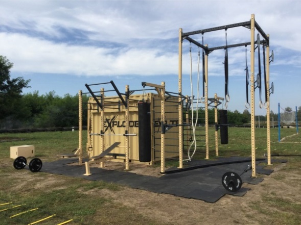 ― Спортзал-контейнер розміром менший за намет ― 43 кв. м, а гімнастичне знаряддя монтується на вулиці, ― пояснив Юрій Фіногенов. ― Він також оснащений силовими тренажерами й спортивним інвентарем. Є в комплектації і боксерська груша для вдосконалення навичок рукопашного бою. На його розгортання передбачається півтори години. Обидва мініспортзали призначені для проведення різних форм фізпідготовки в польових умовах як у районі проведення ООС, так і у місцях відновлення боєздатності.