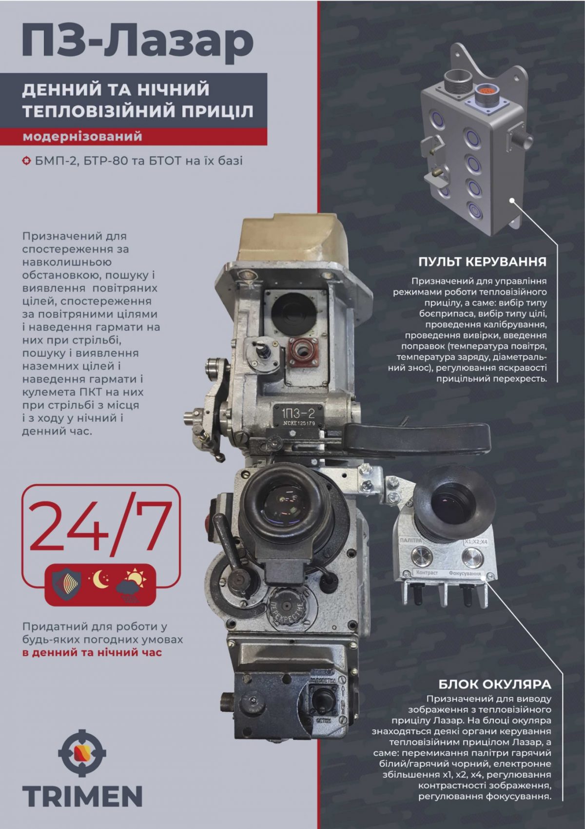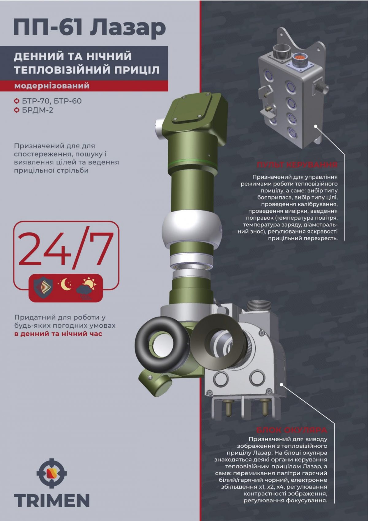 Як повідомили Defense Express у компанії «Трімен», основним напрямом модернізації було додавання тепловізійного каналу у штатні прилади спостереження та прицілювання.