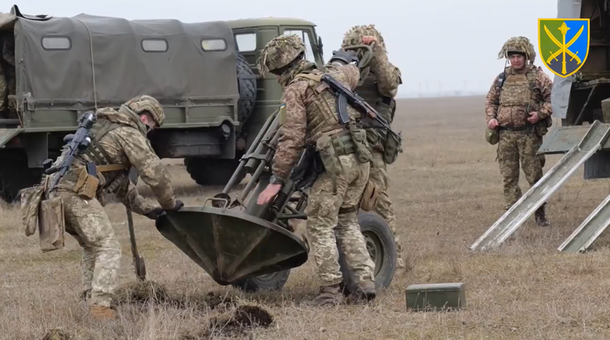 Військовослужбовці інженерно-саперних підрозділів, які несуть бойову службу на межі з тимчасово окупованою територією Криму вздовж узбережжя Чорного та Азовського морів, за підтримки артилерії та армійської авіації виконали практичні тренування з облаштування мінно-вибухових загороджень.