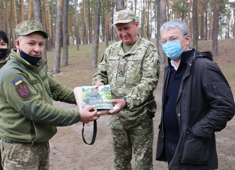 Військовий журналіст інформагентства АрміяInform підполковник Назар Волошин, який наразі виконує завдання в районі проведення операції Об’єднаних сил, передав для бібліотеки навчального закладу черговий випуск дайджесту АрміяInform «Пані військова».
